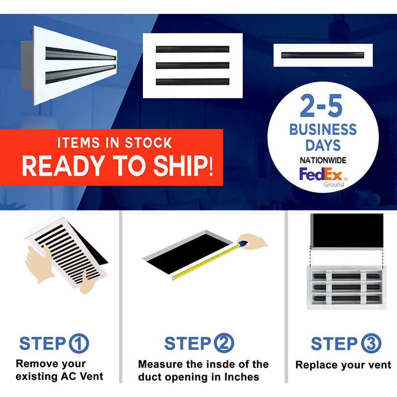 Fast forward to today and we have been very fortunate to see a continued increase in growth from awesome customers just like you who were saying "We Want More!" and so we listened. After 3 generations of AC Vent Covers, we are now in our newest line of Linear Diffusers which is our 4th Generation of AC Vent Covers and VentCover.com is proud to say we have over 100 products that are all made of the highest quality, all In-Stock and Ready to Ship with an estimated arrival time of 2-5 Business Days.