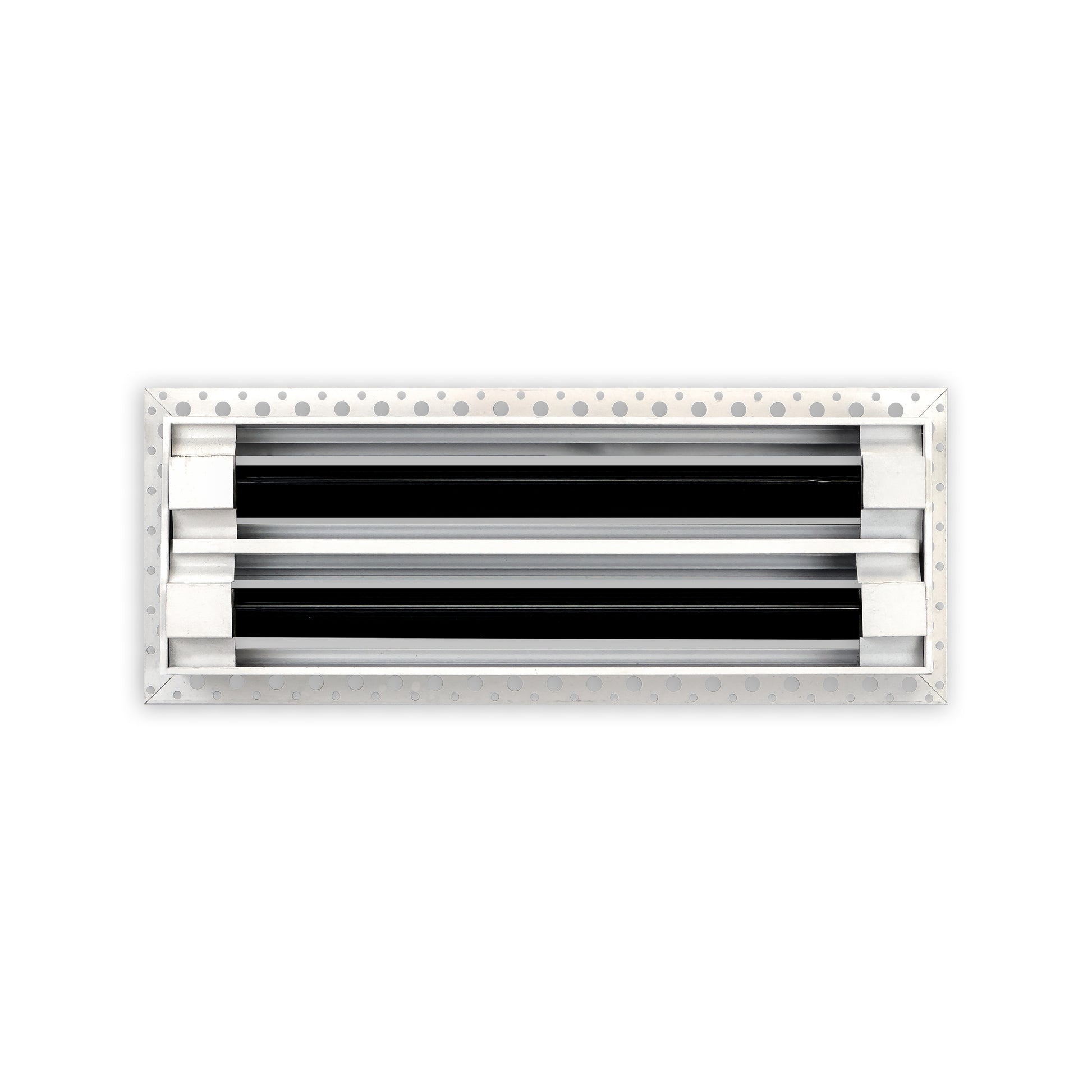 - Texas Buildmart offers Mud In Air Vent Covers also known as Drywall Mud-in White Air Vents. This Mud In Air Vent Cover shoots a 90-degree spread with option to adjust to one side or the other. These have decorative directional dampers. Modern, crisp, clean lines and architecturally appealing. Solid extruded aluminum profile, expertly welded, grinded, and sanded, with reinforcement brackets on the back and a uniform coat of electrostatic paint for a sleek, modern finish and easy maintenance. This white air vent register can be used as a supply air vent cover for ceilings and walls and as a return air vent cover register but looks like a Luxury Drywall Mud-in Vent Cover. If our Mud In Air Vent Cover is used as a Return air vent cover, please make sure the air vent cover is placed in the full open position or remove the directional dampers. Update your Ceiling and Wall Vents with our Mud In Air Vent Covers and it will update the entire look of your Home or Office Space. Rejillas para aire acondicionado de casa blanco. We make all sizes from 6x4 to 30x24 Modern Mud Air Vent Covers for the Modern Day Home. *This is a Design and Utility Patent Pending Product*