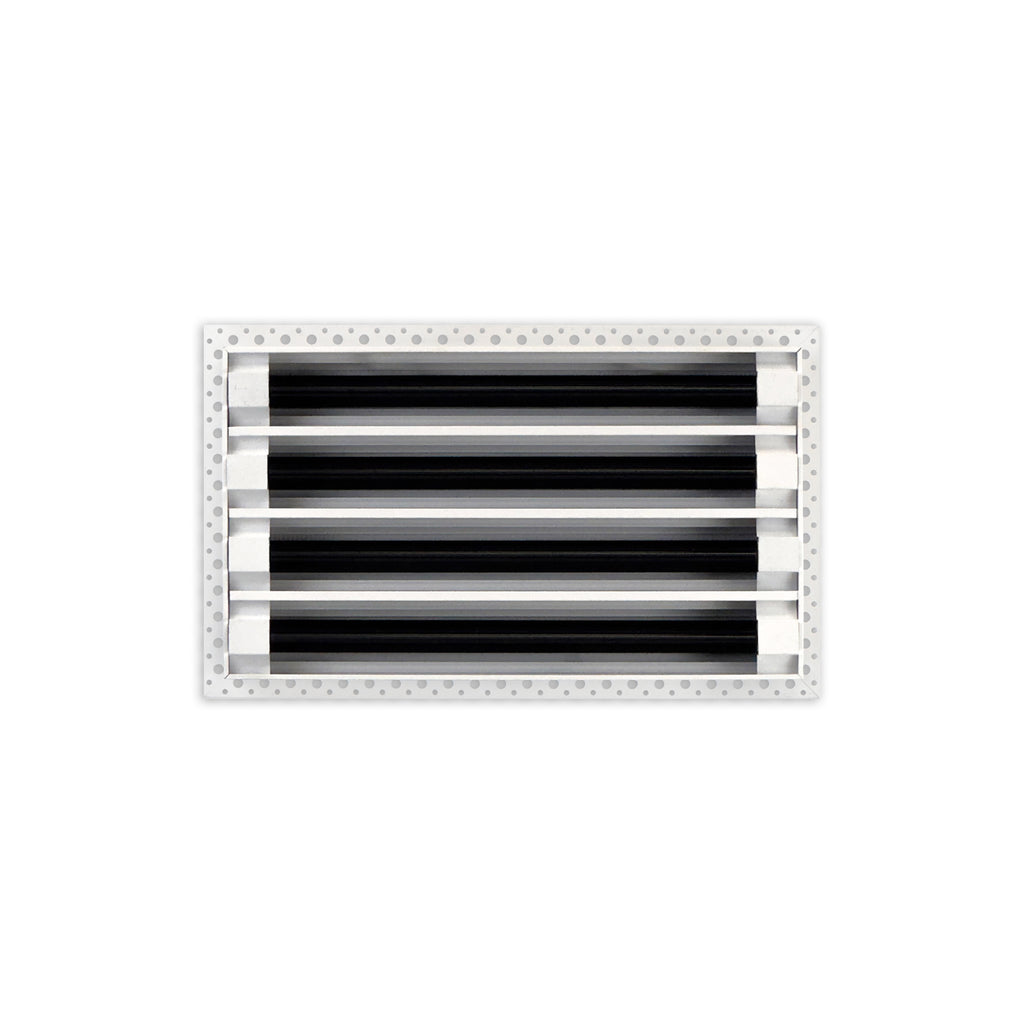 • Texas Buildmart offers Mud In Air Vent Covers also known as Drywall Mud-in White Air Vents. This Mud In Air Vent Cover shoots a 90-degree spread with option to adjust to one side or the other. These have decorative directional dampers. Modern, crisp, clean lines and architecturally appealing. Solid extruded aluminum profile, expertly welded, grinded, and sanded, with reinforcement brackets on the back and a uniform coat of electrostatic paint for a sleek, modern finish and easy maintenance. This white air vent register can be used as a supply air vent cover for ceilings and walls and as a return air vent cover register but looks like a Luxury Drywall Mud-in Vent Cover. If our Mud In Air Vent Cover is used as a Return air vent cover, please make sure the air vent cover is placed in the full open position or remove the directional dampers. Update your Ceiling and Wall Vents with our Mud In Air Vent Covers and it will update the entire look of your Home or Office Space. Rejillas para aire acondicionado de casa blanco. We make all sizes from 6x4 to 30x24 Modern Mud Air Vent Covers for the Modern Day Home. *This is a Design and Utility Patent Pending Product*