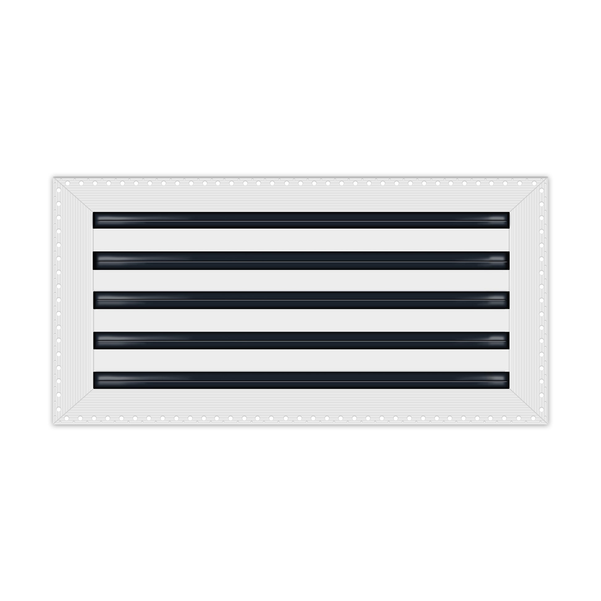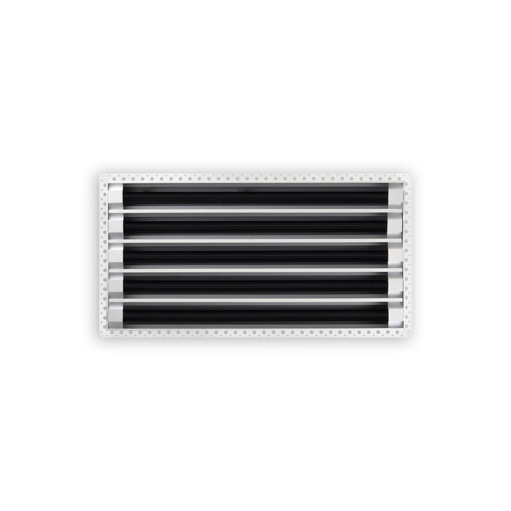 • Texas Buildmart offers Mud In Air Vent Covers also known as Drywall Mud-in White Air Vents. This Mud In Air Vent Cover shoots a 90-degree spread with option to adjust to one side or the other. These have decorative directional dampers. Modern, crisp, clean lines and architecturally appealing. Solid extruded aluminum profile, expertly welded, grinded, and sanded, with reinforcement brackets on the back and a uniform coat of electrostatic paint for a sleek, modern finish and easy maintenance. This white air vent register can be used as a supply air vent cover for ceilings and walls and as a return air vent cover register but looks like a Luxury Drywall Mud-in Vent Cover. If our Mud In Air Vent Cover is used as a Return air vent cover, please make sure the air vent cover is placed in the full open position or remove the directional dampers. Update your Ceiling and Wall Vents with our Mud In Air Vent Covers and it will update the entire look of your Home or Office Space. Rejillas para aire acondicionado de casa blanco. We make all sizes from 6x4 to 30x24 Modern Mud Air Vent Covers for the Modern Day Home. *This is a Design and Utility Patent Pending Product*