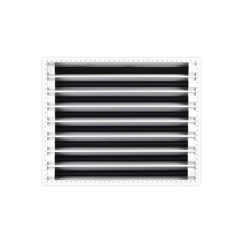 • Texas Buildmart offers Mud In Air Vent Covers also known as Drywall Mud-in White Air Vents. This Mud In Air Vent Cover shoots a 90-degree spread with option to adjust to one side or the other. These have decorative directional dampers. Modern, crisp, clean lines and architecturally appealing. Solid extruded aluminum profile, expertly welded, grinded, and sanded, with reinforcement brackets on the back and a uniform coat of electrostatic paint for a sleek, modern finish and easy maintenance. This white air vent register can be used as a supply air vent cover for ceilings and walls and as a return air vent cover register but looks like a Luxury Drywall Mud-in Vent Cover. If our Mud In Air Vent Cover is used as a Return air vent cover, please make sure the air vent cover is placed in the full open position or remove the directional dampers. Update your Ceiling and Wall Vents with our Mud In Air Vent Covers and it will update the entire look of your Home or Office Space. Rejillas para aire acondicionado de casa blanco. We make all sizes from 6x4 to 30x24 Modern Mud Air Vent Covers for the Modern Day Home. *This is a Design and Utility Patent Pending Product*