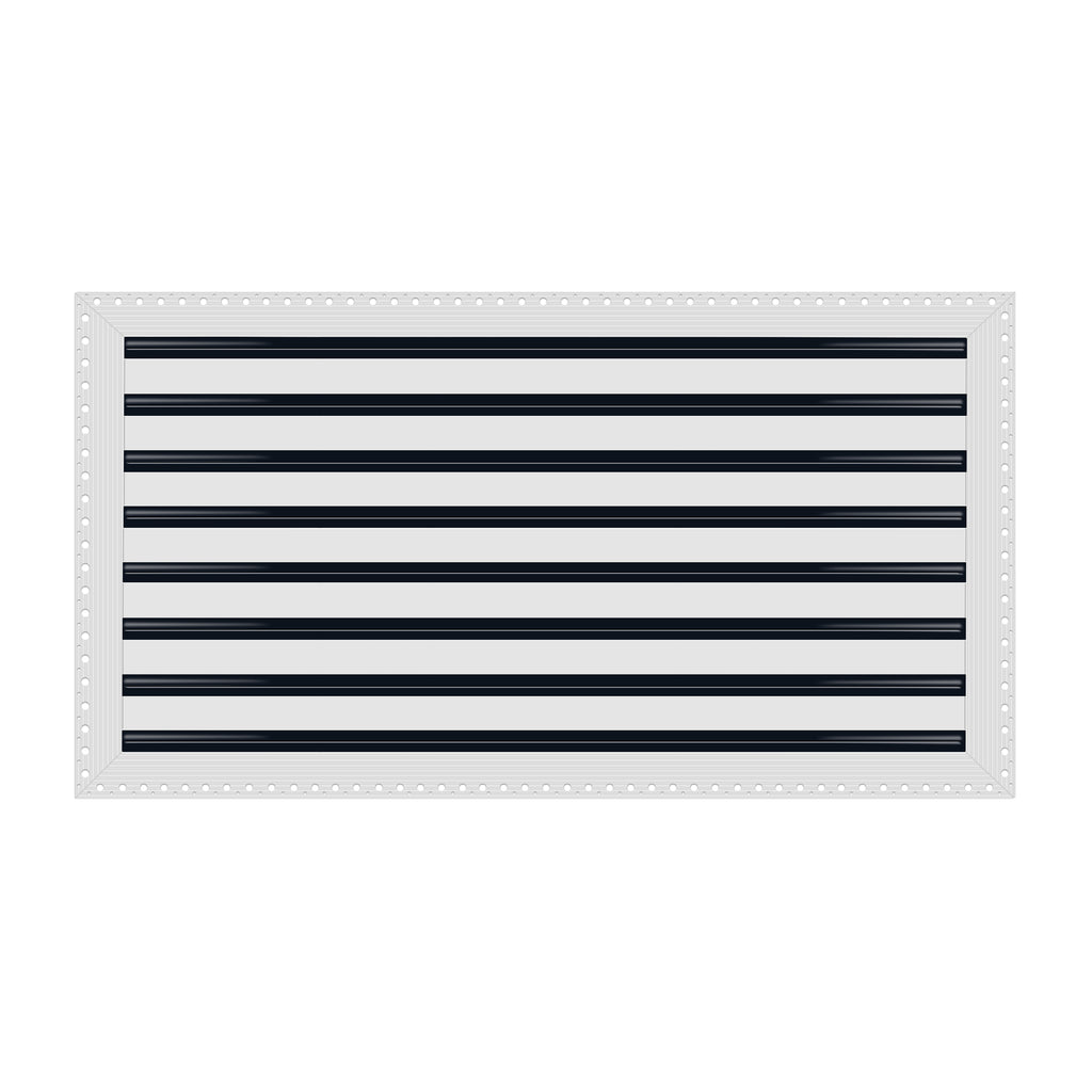 • Texas Buildmart offers Mud In Air Vent Covers also known as Drywall Mud-in White Air Vents. This Mud In Air Vent Cover shoots a 90-degree spread with option to adjust to one side or the other. These have decorative directional dampers. Modern, crisp, clean lines and architecturally appealing. Solid extruded aluminum profile, expertly welded, grinded, and sanded, with reinforcement brackets on the back and a uniform coat of electrostatic paint for a sleek, modern finish and easy maintenance. This white air vent register can be used as a supply air vent cover for ceilings and walls and as a return air vent cover register but looks like a Luxury Drywall Mud-in Vent Cover. If our Mud In Air Vent Cover is used as a Return air vent cover, please make sure the air vent cover is placed in the full open position or remove the directional dampers. Update your Ceiling and Wall Vents with our Mud In Air Vent Covers and it will update the entire look of your Home or Office Space. Rejillas para aire acondicionado de casa blanco. We make all sizes from 6x4 to 30x24 Modern Mud Air Vent Covers for the Modern Day Home. *This is a Design and Utility Patent Pending Product*