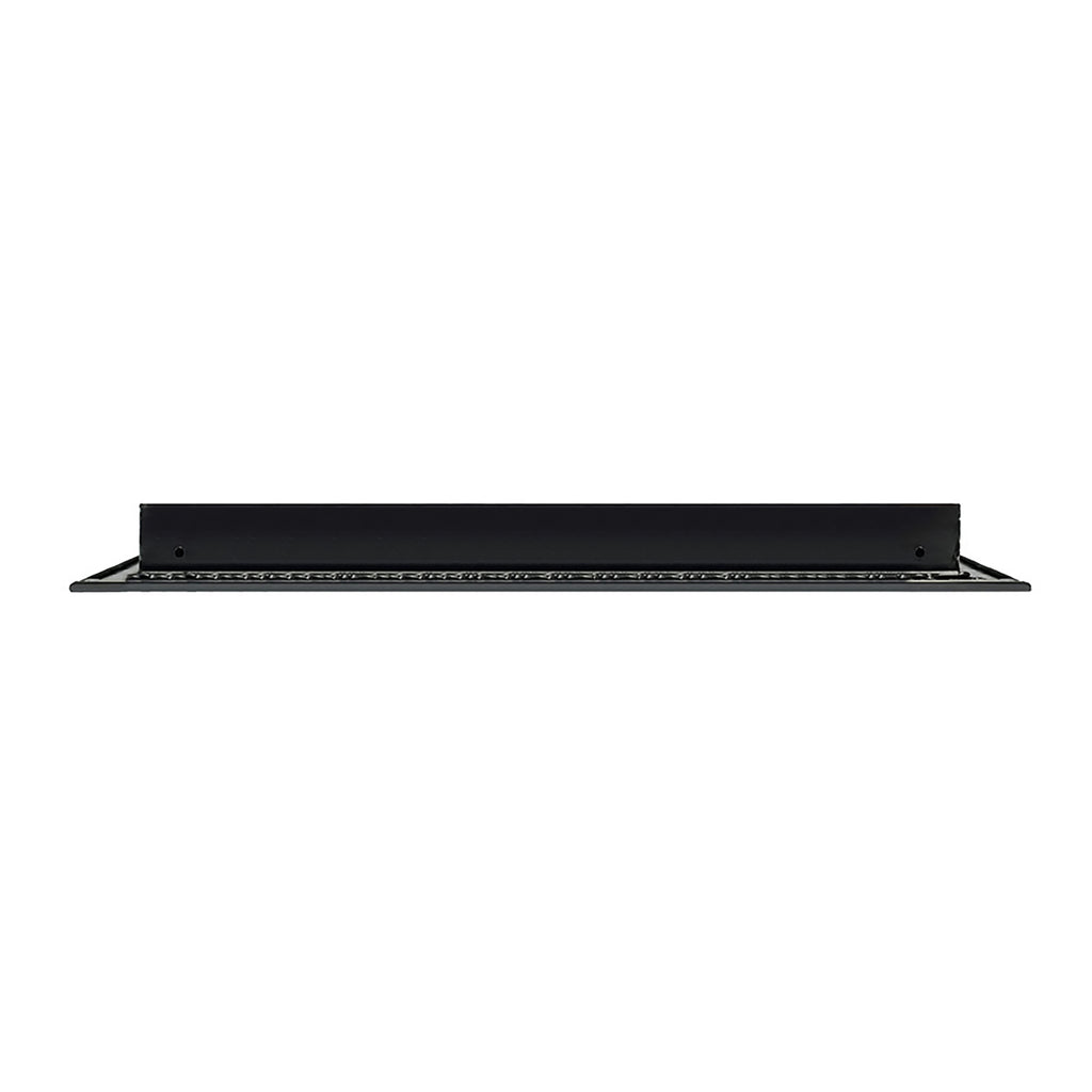 - Texas Buildmart offers Modern AC Vent Covers also known as High Quality Standard Linear Slot Diffusers. This Modern AC Vent Cover shoots a 90-degree spread with option to adjust to one side or the other. These have decorative directional dampers. Modern, crisp, clean lines and architecturally appealing. Solid extruded aluminum profile with welding - Electrostatic Paint which makes it easy to clean because of its dust-resistance. This black air vent register can be used as a supply air vent cover for ceilings, walls, and floors. This vent cover was designed to be decorative and not structural. You can use this as a floor vent cover, but it is not designed to support weight, adding any type of weight is not recommended. This vent can be used as a return air vent cover as well. This register is not only a vent cover, but it looks like a Modern Contemporary looking fixture. If our Modern AC Vent Cover is used as a Return air vent cover, please make sure the air vent cover is placed in the full open position or remove the directional dampers. Update your Ceilings, Walls & Floor Vents with our Modern AC Vent Covers and it will update the entire look of your Home or Office Space. Rejillas para aire acondicionado de casa negro. We make all sizes from 6x4 to 30x24 Standard Sized Modern AC Vent Covers for the Modern Day Home. *This is a Design and Utility Patent Pending Product*