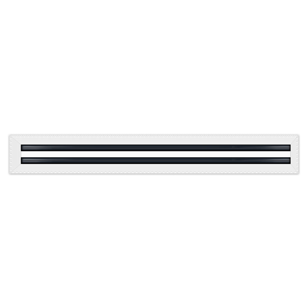 Linear slot diffusers are a type of air diffuser used in heating, ventilation, and air conditioning (HVAC) systems. They are designed to distribute conditioned air evenly throughout a room or space. Linear slot diffusers typically consist of a long, narrow slot or opening that runs along the length of the diffuser. Air is distributed through this slot, and then spread out into the room by a series of slots which each contain deflectors (dampers) that are located within the diffuser slots. Linear slot diffusers are often used in commercial and industrial buildings, such as office buildings, schools, and hospitals, because of their ability to distribute large amounts of air over a wide area. They are also often used in buildings with high ceilings, such as airports, atriums and shopping centers. Linear slot diffusers also come in a variety of sizes and designs to match the specific needs of a building. They can be ceiling-mounted, wall-mounted, or floor-mounted and are made of 100% aluminum. Some can have adjustable slots to control the airflow direction or be equipped with deflectors (dampers) to control the airflow volume. They are commonly used in commercial and industrial buildings, as well as buildings with high ceilings. Ours come in a variety of sizes from 12" to 72” in 1-2-3 Slot Linear Diffusers.